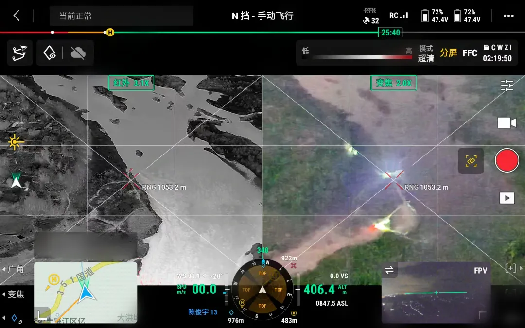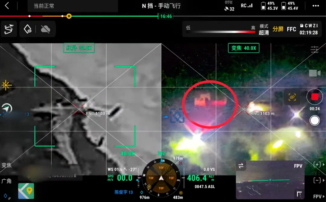 在日常執(zhí)法行動中,為了確保調(diào)查的順利進行,無人機通常會與目標物保持較遠距離。在本次任務(wù)中,即便無人機距離目標遠達 1200 米,禪思 H30T 的熱成像相機和夜視相機仍然能夠清晰呈現(xiàn)目標物,為執(zhí)法行動提供有力保障。