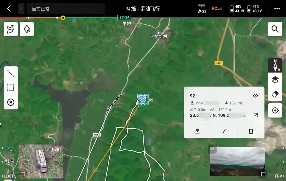 發(fā)現(xiàn)車輛后,工作人員通過打點定位功能獲取車輛坐標,并為地面搜索隊規(guī)劃最佳行進路線,搜索隊直接前往目的地。同時,無人機保持高空視角,持續(xù)觀察被盜車輛周圍環(huán)境,為現(xiàn)場布控提供信息支持。