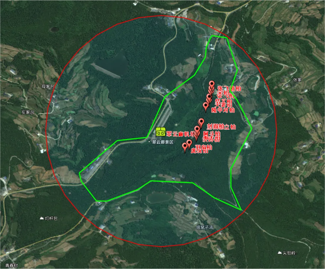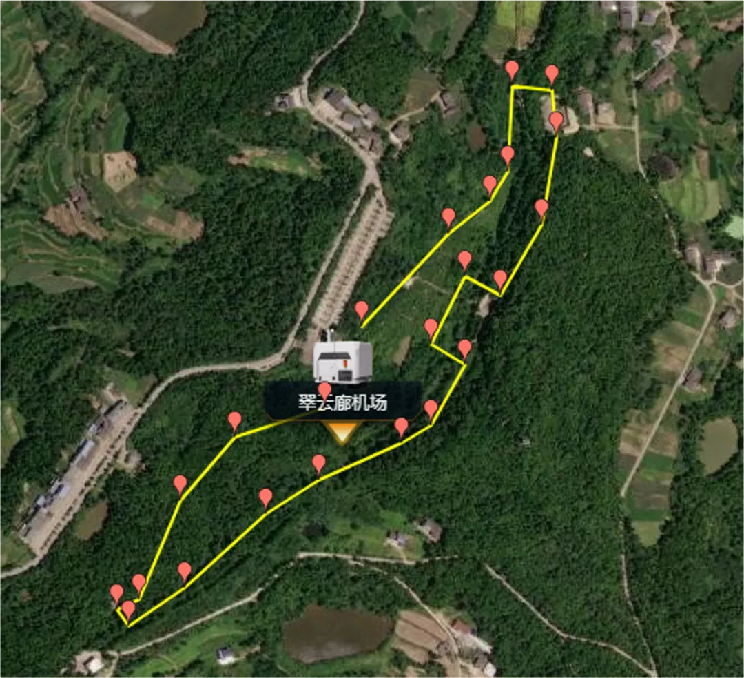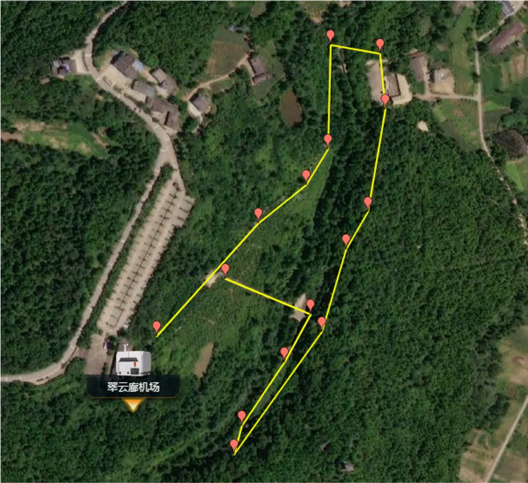在翠云廊古柏自然保護區(qū),劍閣柏、夫妻柏、張飛柏等 12 棵著名古柏是重點監(jiān)測對象。為了獲取它們的生長情況,管理處根據(jù) 12 棵古柏的分布情況,為無人機規(guī)劃自動巡查航線。
