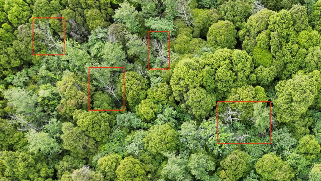 通過無人機拍攝的畫面,查看枯萎樹枝