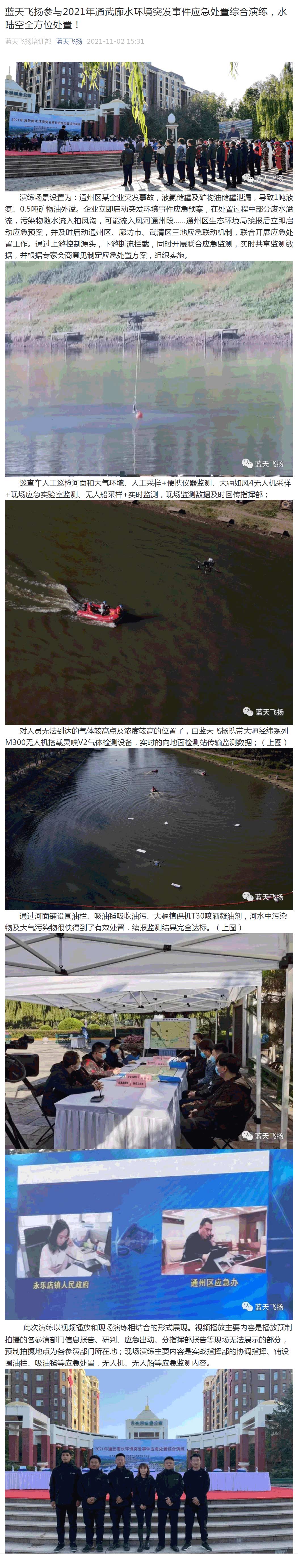 藍(lán)天飛揚(yáng)參與2021年通武廊水環(huán)境突發(fā)事件應(yīng)急處置綜合演練,水陸空全方位處置!